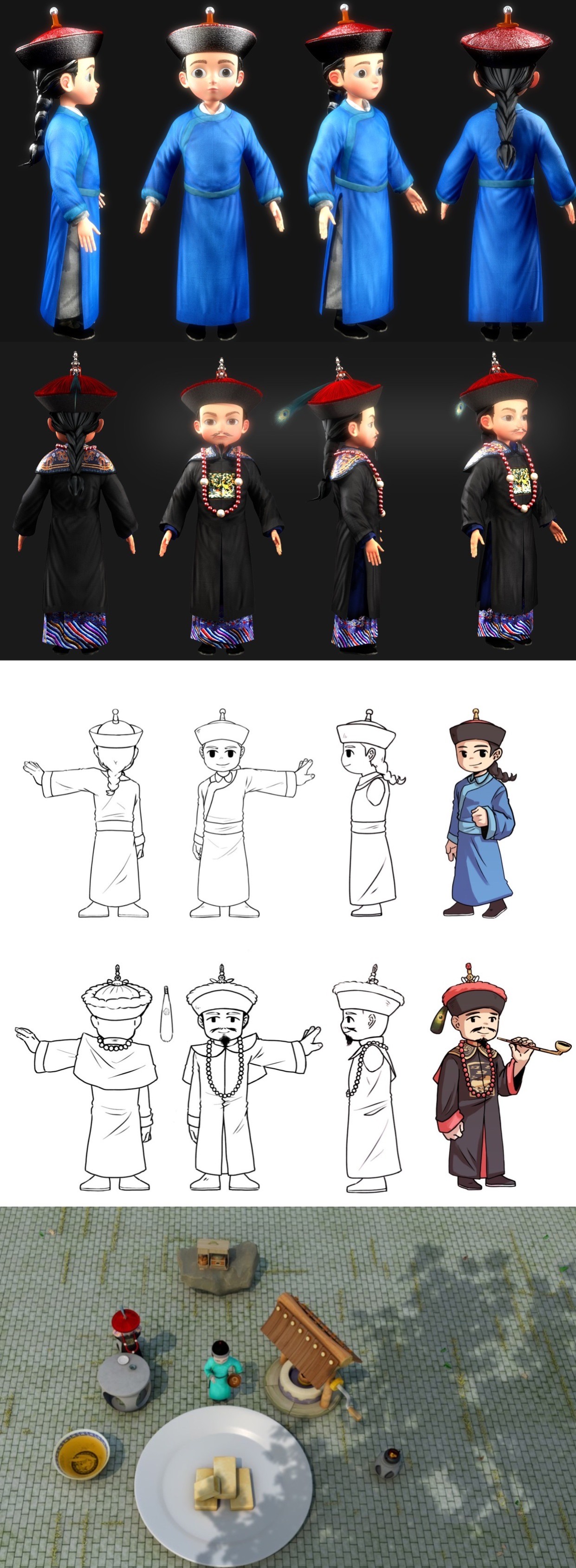 3D投影打造夢幻餐桌,是以光雕投影的方式呈現關於清乾隆皇帝品茶的小品動畫〪觀眾以乾隆皇帝的視角,與紀曉嵐和庶務小太監一同渡過逗趣的品茶時光。